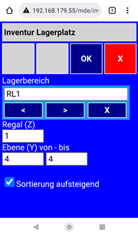 - Inventur Lagerplatz: Ebenen-Selektion (von - bis), Sortierung auf-/absteigend