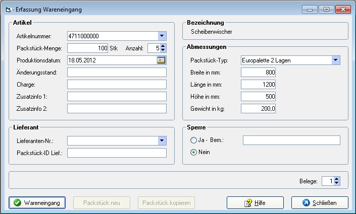 - Erfassung Wareneingang (mit Kopierfaktor für identische Packstücke)